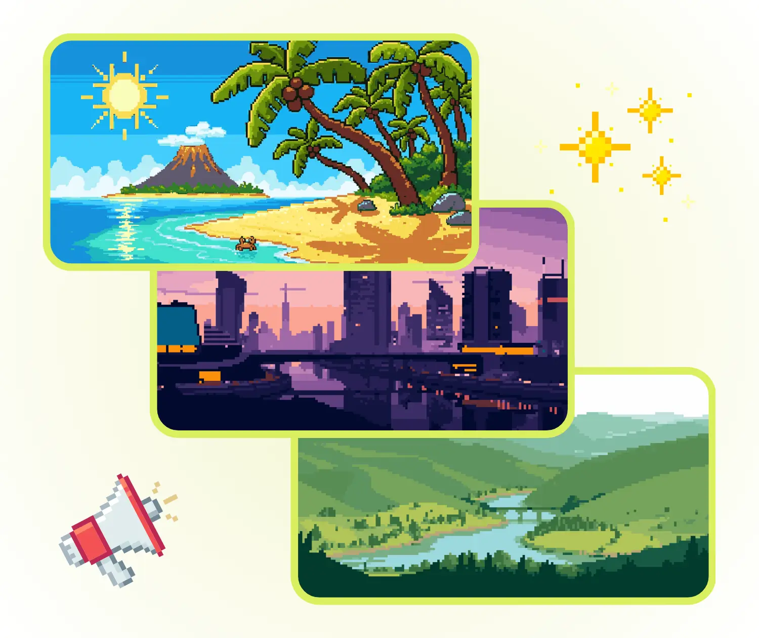 Create avatars, illustrations, and game assets quickly without manual pixeling.