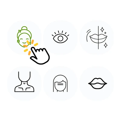 Pick full face, eye area, forehead, smile lines, perioral lines, or neck wrinkles for precise control.